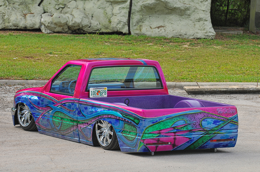 We stopped by Tricked out Customz in Tampa, FL to chat with owner Billy Kidd on his recent paint overhaul of Ann Grande's 1990 Isuzu Pup. It was a pleasure to get up close and personal with this masterpiece after seeing the stunning photos of the lowered Pup in all of its glory.